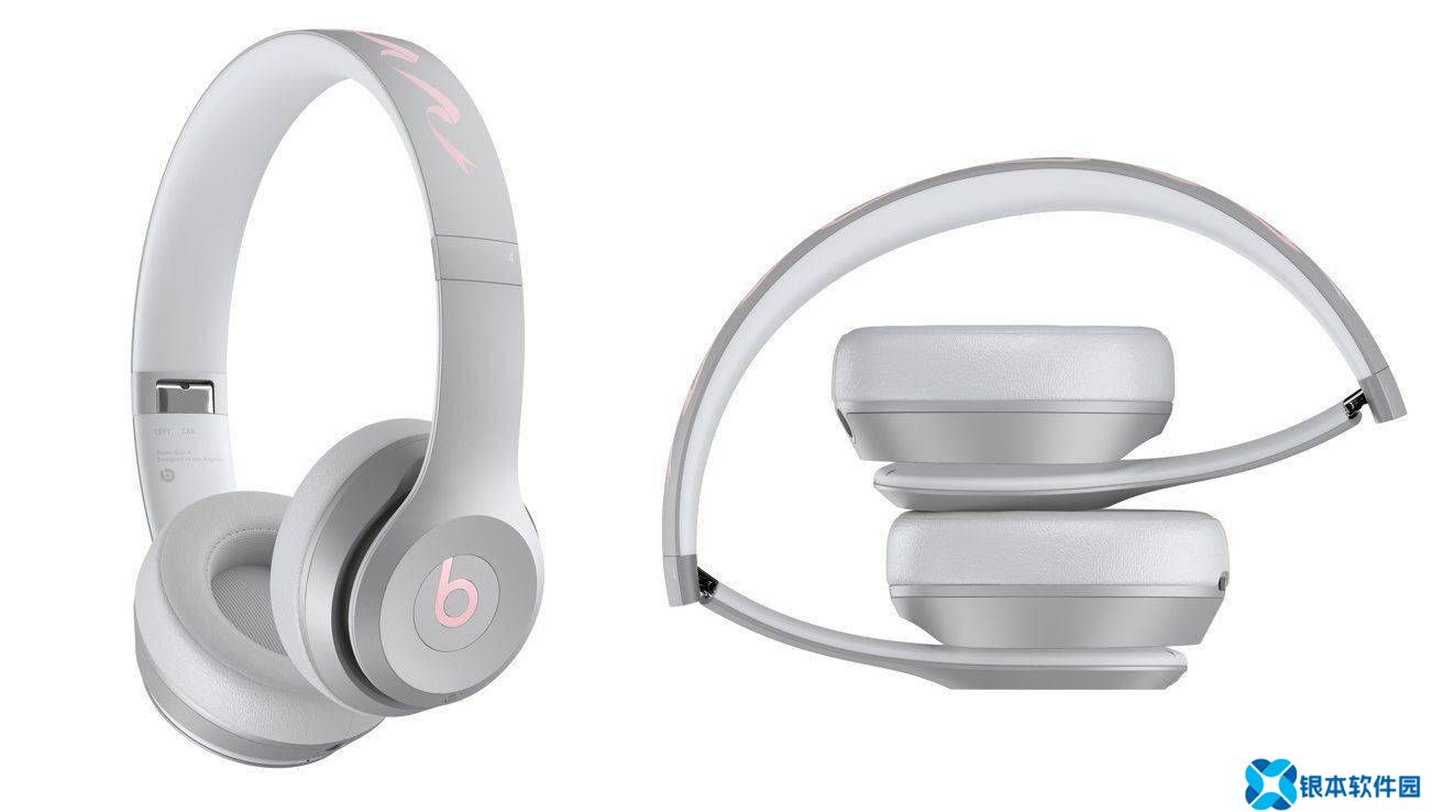 这款耳机以 Liang 的怀旧与趣味美学为灵感,采用金属银色基底,搭配手绘粉色丝带设计,耳罩上的 Beats 标志也改为粉色,整体设计充满个性与玩味。