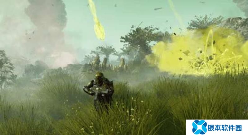 这是一款第三人称团队射击游戏,玩家将加入绝地潜兵精锐部队,投身艰苦的星系战争。游戏中,玩家可以使用多种武器(如手枪、机枪、火焰喷射器)和战略配备(如炮台、空袭等),消灭外星威胁,恢复银河系的安宁与自由。