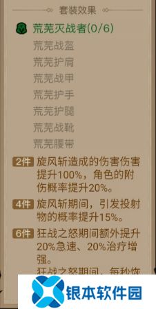4、荒芜灭战者的综合强度相对较高,两件四件套效果为旋风斩直接强化,六件套效果为针对狂战之怒终极技能强化。