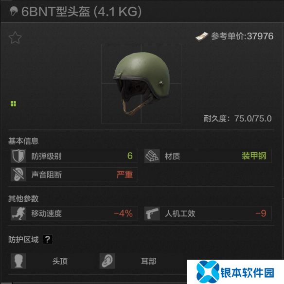 75耐久,头顶耳部防护,严重声音阻断,最高加装六级面罩,六级装甲钢全防,但也是因为装甲钢,带来了严重声音阻断,而且耐打能力差,负面buff较高,而且来到六级的防护等级,实际上材料的防护能力已经没有那么重要了,会更加要求耐打耐修能力这一块,因此6BNT虽然硬,但没那么推荐。