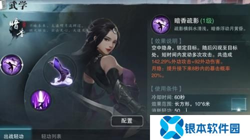轻功技能:暗香的轻功技能不仅可以快速移动,还可以对敌人造成压制效果。在敌人聚集或逃跑时,轻功技能可以发挥重要作用。