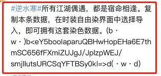 找到其他玩家分享的染色数据字符串,从“逆水寒”开始到字符串的最后一个字母,全部复制。