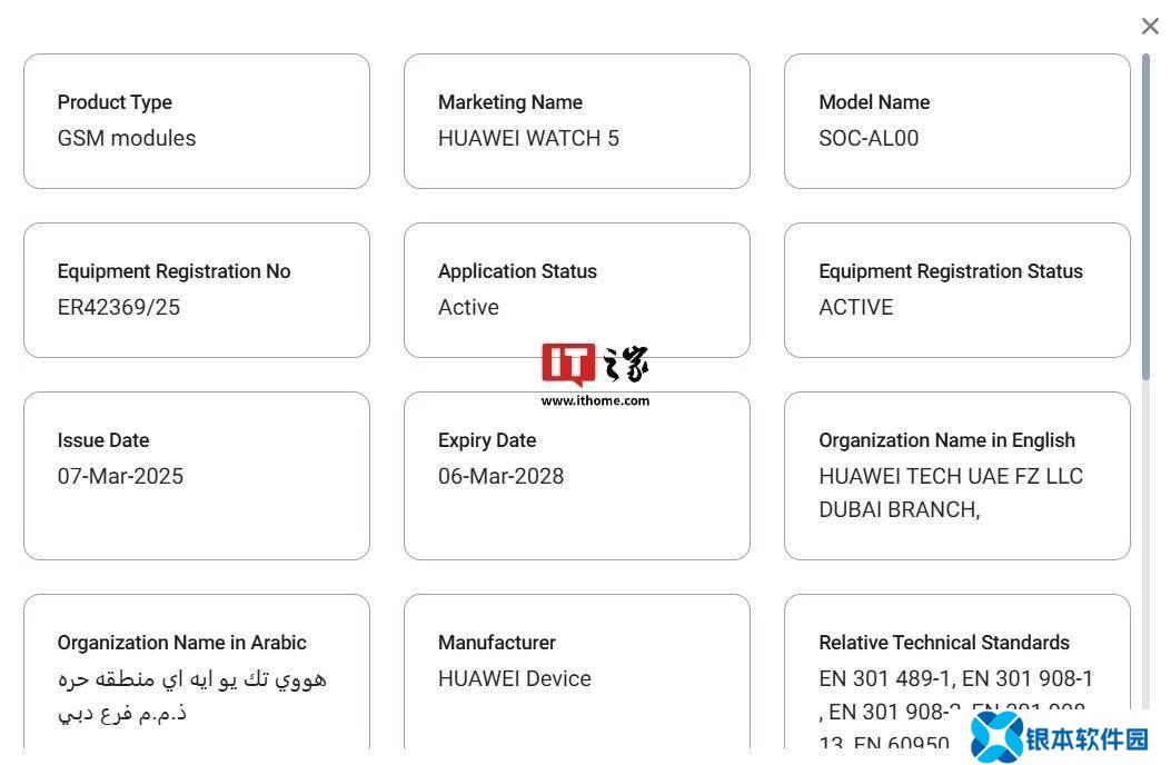 早前有报道称华为的另一款智能手表——WATCH 5,已经在阿联酋通过了TDRA认证。该手表的型号为SOC-AL00,注册号为ER42369/25。这一消息预示着WATCH 5有望近期在海外市场上市,为消费者带来全新的智能穿戴体验。
