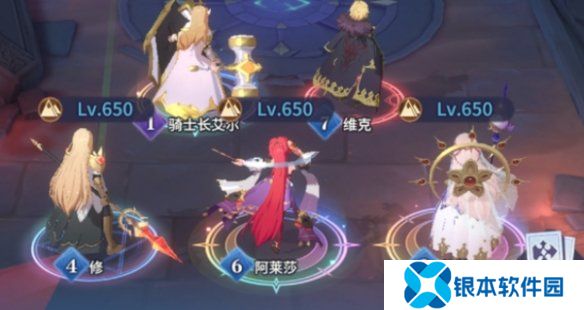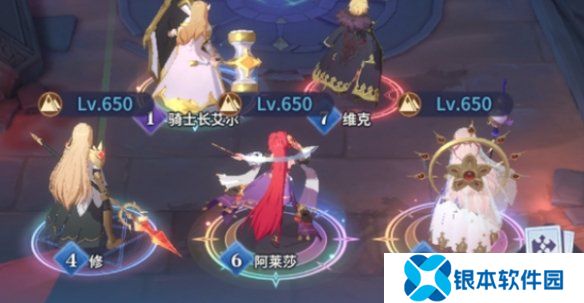 6、站位推荐:前排是骑士长艾尔和维克,后排则为修、阿莱莎和弥纱。
