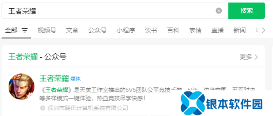 1、首进入微信后,在搜索框输入【王者荣耀】,接着点击下方的王者荣耀公众号。