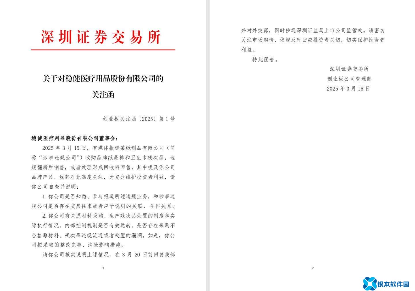 近期,资本市场监管动态引人注目,深圳证券交易所对两家卫生用品行业上市公司发出了关注函。首先,重庆百亚卫生用品股份有限公司,即知名品牌“自由点”的母公司,收到了来自深交所上市公司管理一部的关注要求。这份关注函中,深交所要求该公司全面自查,并详细说明是否了解或参与了相关报道中提及的违规业务活动,以及是否与报道中涉及的违规公司存在任何形式的交易往来、关联关系或合作关系。