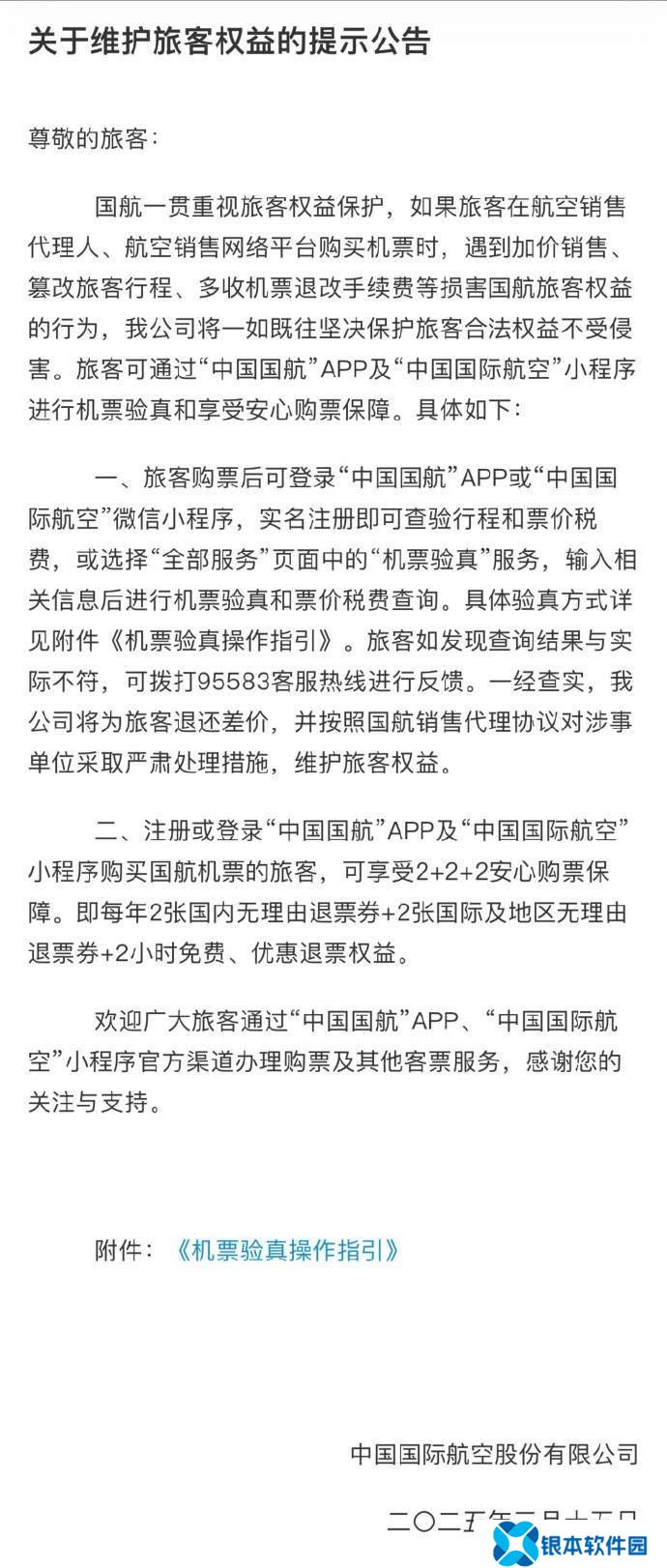 紧接着,中国国际航空和中国东方航空也相继发布了类似公告,直指部分第三方销售商存在的违规行为。国航在公告中明确表示,对于在航空销售代理人或网络平台购票时遇到的加价销售、篡改行程、多收退改手续费等行为,公司将坚决保护旅客的合法权益不受侵害。国航提醒旅客,可以通过其官方App及小程序进行机票验真,确保购票过程的安心与透明。