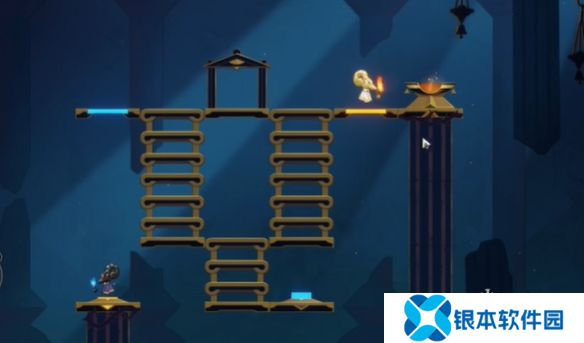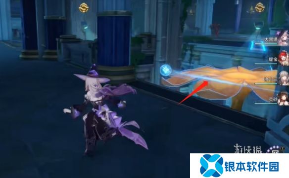 5、普攻打一下金色的光球并回溯时间,乘坐花朵到达上层。