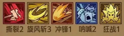 符文组合:撕裂2、旋风斩3、冲锋1、呐喊2、狂战1。