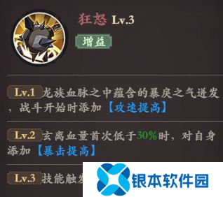 技能描述:龙族血脉之中蕴含的暴戾之气迸发战斗开始时添加【攻速提高】(提高15%攻速,持续9秒)