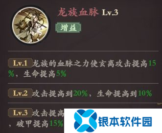技能描述:龙族的血脉之力使玄离攻击提高15%,生命提高5%