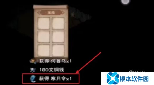 5、来到山洞坐标(18,4)处会发现一个宝箱,打开宝箱即可获得寒月令。