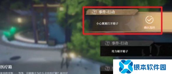 3、过去交互,选择事件行动小心翼翼打开箱子,即可获得宝箱。