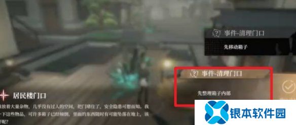 3、选择事件清理门口先整理箱子内部,即可获得宝箱。