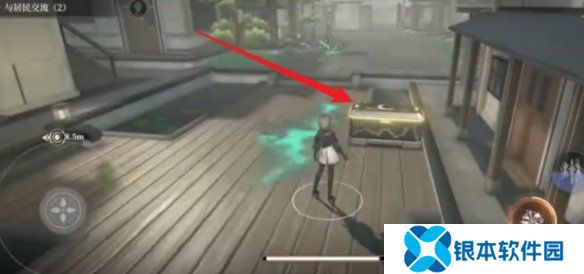 5、走到图中位置,去箭头处的光点进行交互。