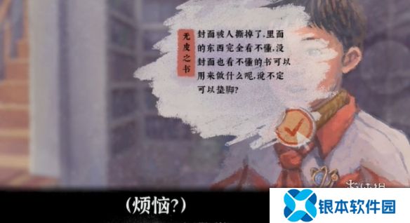 4、继续和柯云对话,选择早上……,在对话中选择烦恼为无皮之书。