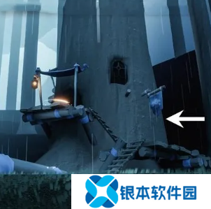 4、找到树屋及先祖:右转后可以看到右侧的树屋,花环先祖就在树屋左侧底部。