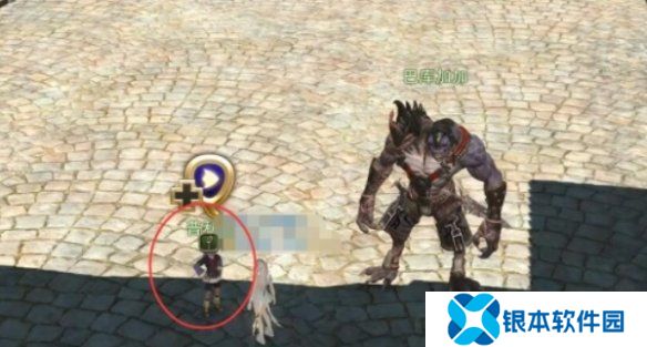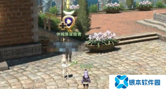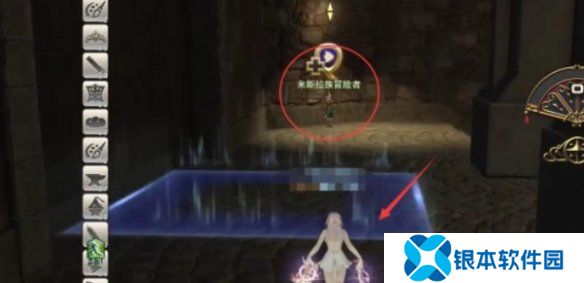 3、与左边的【冒险者】对话,进入右上方的蓝框区域。