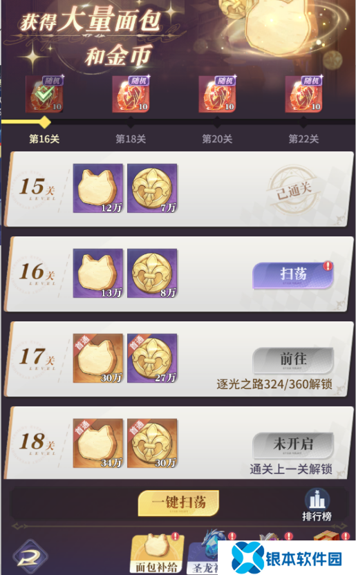 物资补给:包含面包、圣龙、典籍、魔晶四部分,每天尽量打到极限并扫荡,前期扫荡次数必买满。