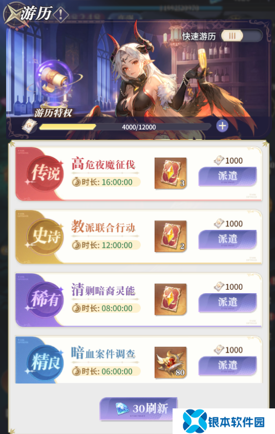 游历是获取资源的重要途径,包括突破石、钻石、守护之魂、圣龙材料、魔偶谜箱、契约卡牌等。
