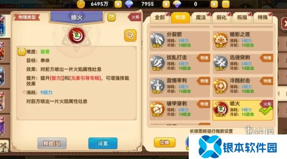 1、攻击力类:喷火、魔法箭、地狱射线、地狱之箭、地震、轰鸣波动、火焰爆炸