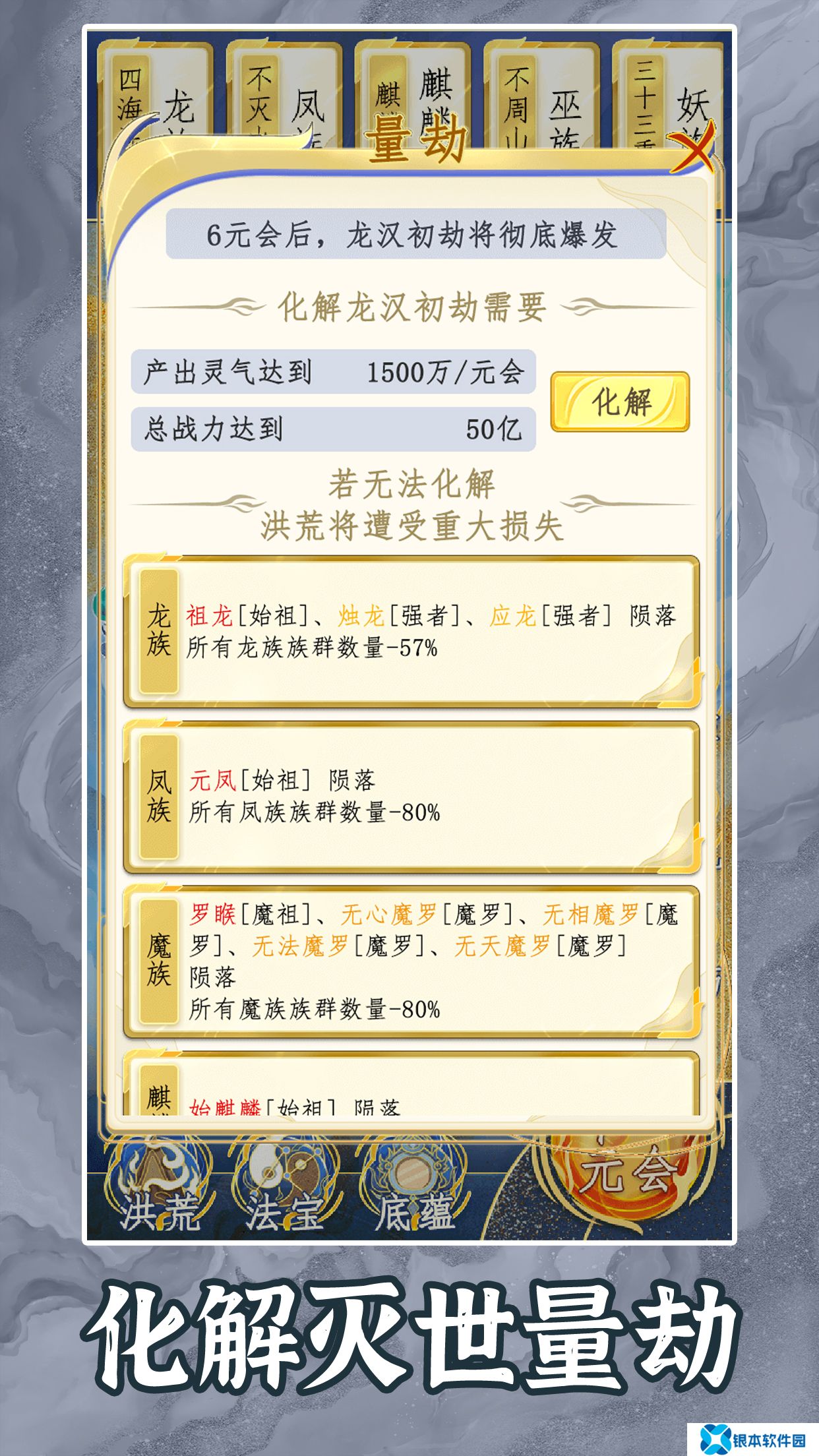 游戏介绍 洪荒天道2主宰是我就是洪荒天道的优化版本,游戏聚焦于洪荒世界,在这里你掌握整个世界的天道,你需要守护此方天地,接引并培养不同时代的强者以抵抗外域势力的入侵。
