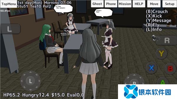 玩法:你是爱跷课的坏学生,一次心血来潮去学校上课,想不到缺课太多,校长广播要把你抓住并惩罚,3-4名老师开始抓你,你只能跑,只能在特定地方瞬移且不能飞行(短时间飞行可以,视为跳跃),而且还有特定日常的事要做,必须撑过一天才能成功。你只能到自家,视听教室,花园,游泳池,图书馆和女仆咖啡厅这几个地方才能瞬移,不能瞬移到山上或海上,可以投降,到花园拿武器将老师全杀掉即可投降,可以用设定或其他暂停游戏查看任务。