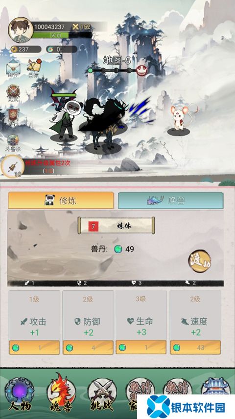 进入“修炼”功能,点击消耗丹药提升“攻击”“防御”“生命”“速度”达到当前上限,