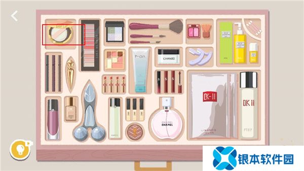 3、所有化妆品放进去之后,剩下粉扑无处安放,点击粉饼盒子打开。