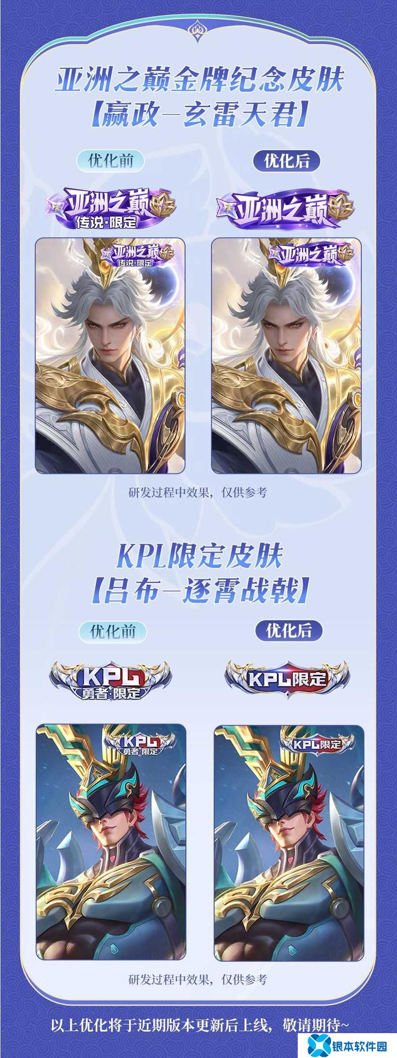 王者荣耀皮肤标签优化预览 亚洲之巅金牌纪念皮肤、KPL吕布限定皮肤(去除【传说】【勇者】标识、去掉【限定】稀有度标识)