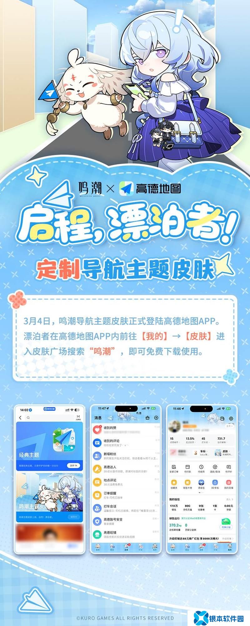定制导航主题皮肤:在高德地图APP内前往【我的】→【皮肤】进入皮肤广场搜索【鸣潮】,即可免费下载使用。