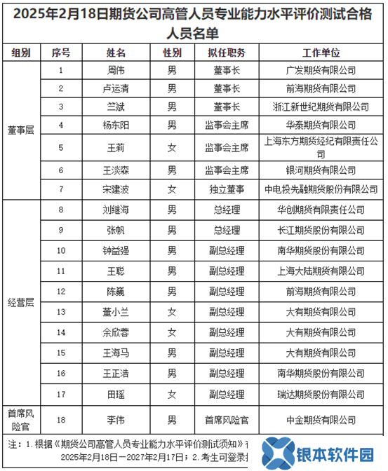 近期,中国期货业协会官方网站发布了最新一期期货公司高管人员专业能力水平评价测试合格名单,揭示了期货行业管理层的最新动态。此次测试中,共有来自广发期货、前海期货、浙江新世纪期货等14家期货公司的18名拟任新高管成功通过考核。