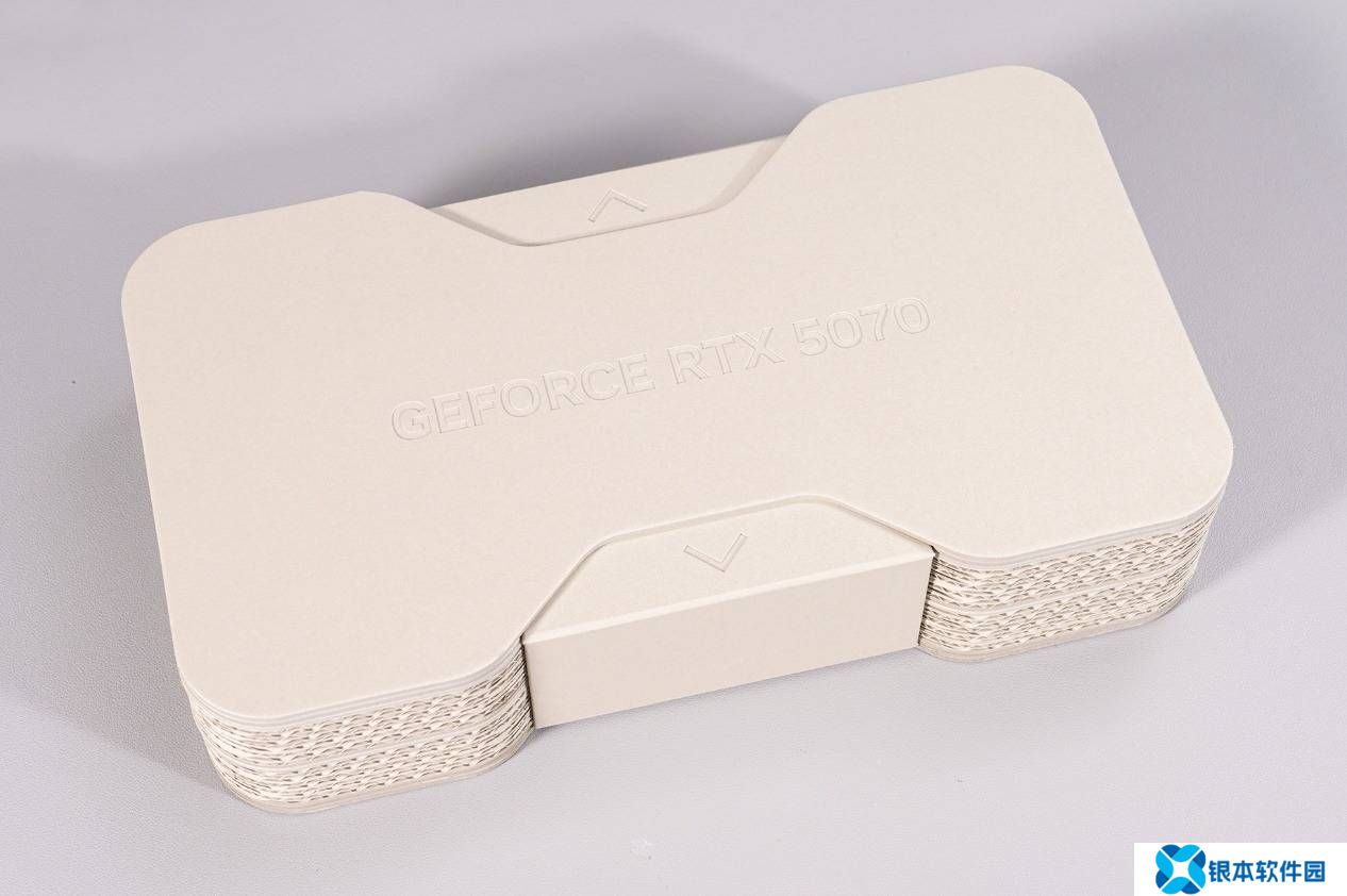 继续拆开包装就能看到显卡被放在一个充满设计感的包装盒中。包装盒表面再度注明了“GEFORCE RTX 5070“字样。