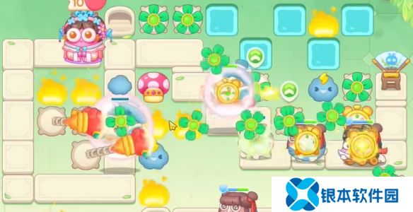 2、先在左上角建造一个拳套并升级,攻击附近的道具。
