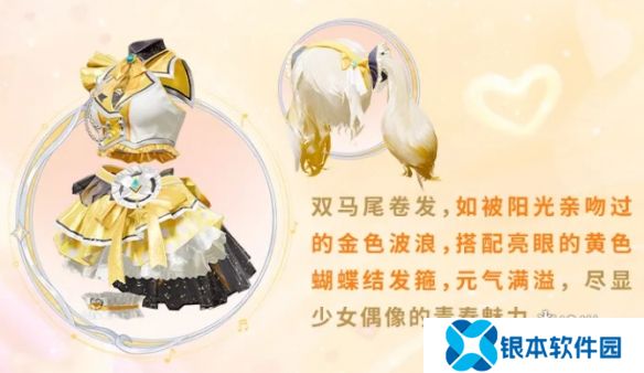2、发型:双马尾卷发,如被阳光亲吻过的金色波浪,搭配亮眼的黄色蝴蝶结发箍,元气满溢,尽显少女偶像的青春魅力。