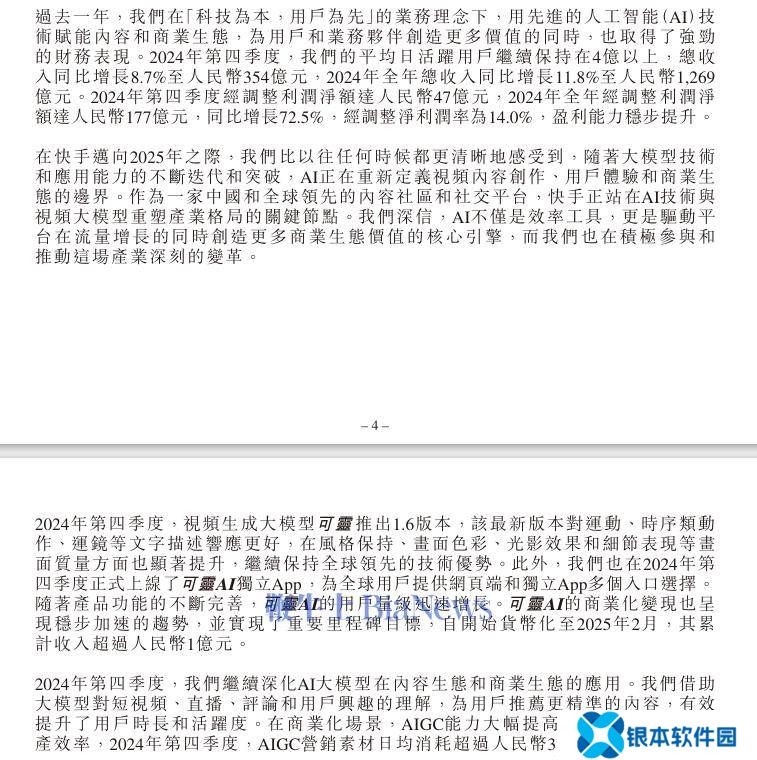 近日,快手正式揭晓了其2024年度及第四季度财务业绩,亮点之一在于其AI商业化进程的显著成果。据官方公告,自启动商业化战略至2025年2月底,可灵AI已累计创收超过1亿元人民币,标志着快手在AI技术应用上的商业探索取得了重要突破。