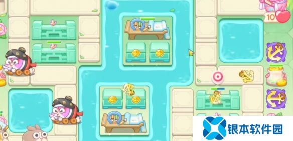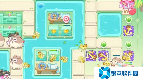 3、在右下角补充两个船锚,集中火力攻击中间的宝箱。