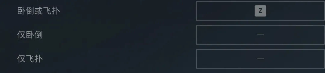 PC端干员可以按照自己操作习惯来设置,也可以参考下图的设置,在奔跑的情况下按卧倒键(Z),即可实现飞扑。
